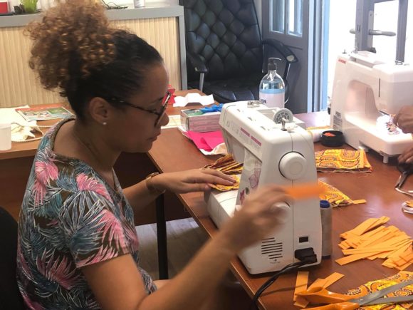 La Mairie de Sainte-Marie a fourni à l’association les tissus, filtres et petits matériels.