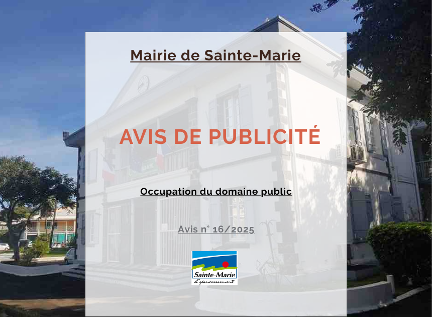 Le présent avis de publicité fait l’objet de la publication sur le site internet www.ville-saintemarie.re à compter du 17/09/2025.