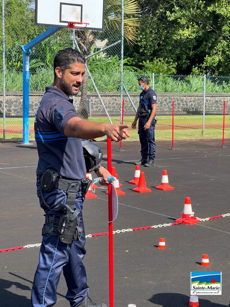 La Police Municipale de la ville s’est également mobilisée pour mettre en place un atelier sur la prévention routière. « Cette journée nous permet de sensibiliser les jeunes sur les dangers de la route lorsqu’ils sont à vélo ou à pied. On leur apprend à se positionner sur la chaussée, à observer les dangers et à réagir. » explique Jean Noel Fontaine, brigadier-chef principal de la Police Municipale.