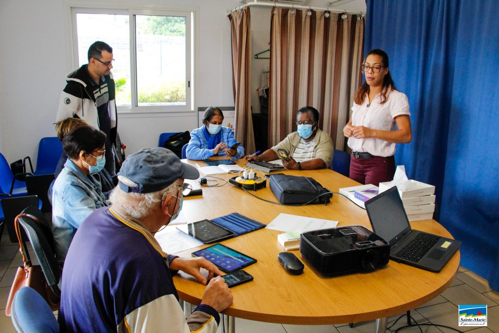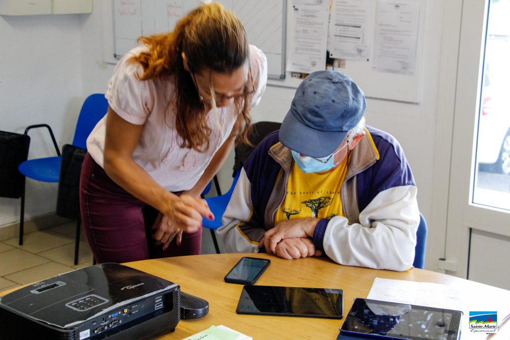 En partenariat avec la Sécurité Sociale et les caisses de retraite, le CCAS de Sainte-Marie organise des ateliers d’inclusion numérique à destination des séniors pour tordre le cou aux clichés trop souvent entendus : « ce n’est plus de mon âge ! »