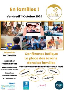 Parents, enfants, c’est le moment de se retrouver pour une conférence ludique sur un sujet qui nous concerne tous : La place des écrans dans les familles .