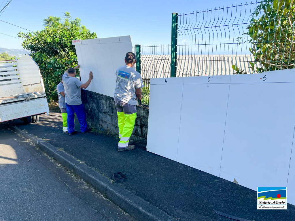 « Nous terminons aujourd’hui la pose sur les 12 sites affectés à notre équipe. Nous repasserons régulièrement pour nous assurer que les panneaux n’ont pas été dégradés » précise-t-il. Avec Camille, Jean René et Frédéric, le chef d’équipe travaille habituellement au Service Environnement où il assure l’entretien dans le secteur de l’Espérance. A l’approche des élections, ils ont été sollicités pour venir en renfort au sein du Service Électoral.