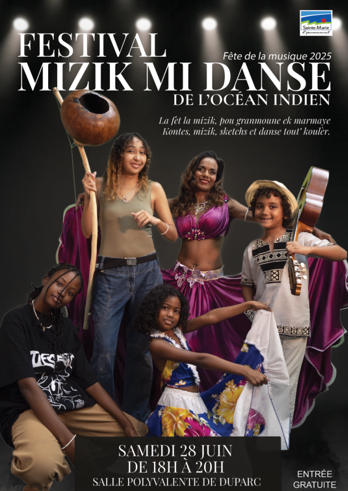 11/06/202511/06/2025Festival Mizik Mi danse samedi 28 juin de 18h à 20h salle polyvalente de DuparcDans Actualités municipalesMots clés fete de la musique, gratuit, Médiathèque Anne Mousse, spectacle