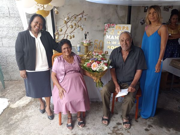 Le dimanche 2 octobre 2022, entourés de leurs enfants et petits-enfants, ils ont fêté leurs Noces d’Or à leur domicile. Un moment partagé avec les Conseillères municipales Myrielle HIVANHOE et Michelle NIRLO.