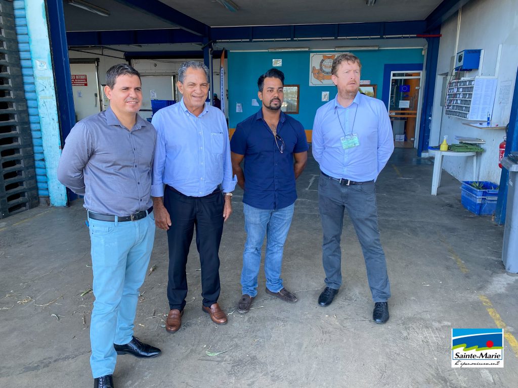 Visite par le Maire de la Ville, Richard Nirlo, accompagné de l’élu en charge du Développement économique et des marchés forain, Jean-François Boyer, du Président de l’OP Anafruit, Gael Dijoux, de la société d’exportation Philibon.